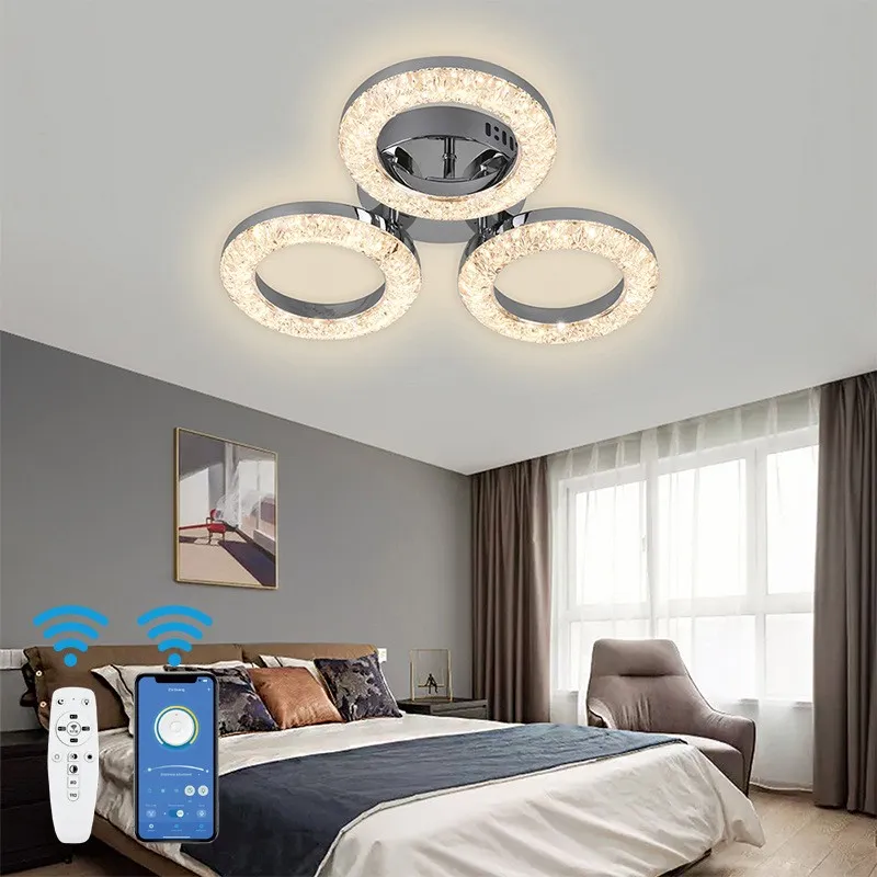 Потолочный светильник YKL34-06X3H “Три сверкающих кольца” Белый 70W с ИК-пультом ДУ Популярный круговой потолочный светильник в стиле лёгкой роскоши с регулируемой яркостью для гостиной и спальни, декоративный светодиодный светильник круглой формы Размеры: 560×560×90 мм Отсу...