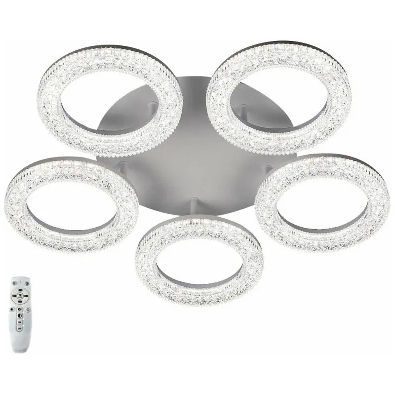 Потолочный светильник YKL34-06X6H “Пять сверкающих колец” Белый прозрачный 120W Международный скандинавский стиль, круглый потолочный светильник с регулируемой яркостью для гостиной, современный минималистичный декоративный светодиодный светильник Размеры: 560×560×90 мм Геом...