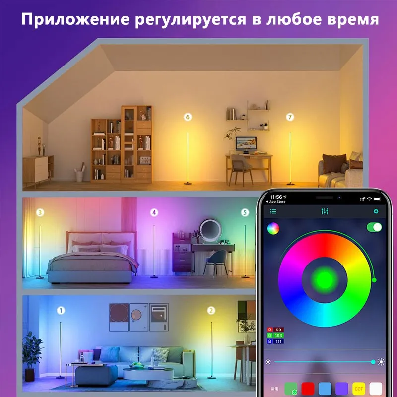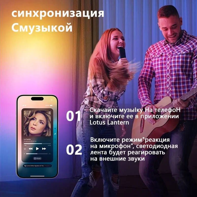 Светодиодная лента RGB с изменением цвета, управление через приложение и пульт ДУ, для декора помещений