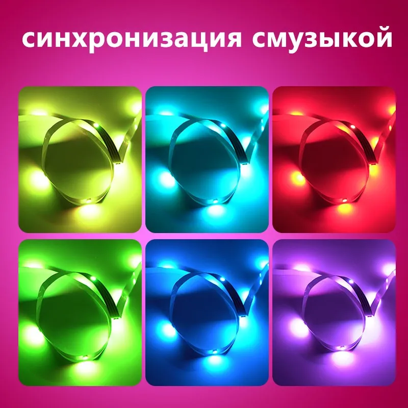 Светодиодная лента RGB с изменением цвета, управление через приложение и пульт ДУ, для декора помещений