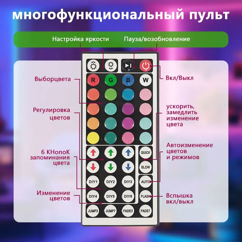 44-кнопочный пульт ДУ с управлением через Блютуз-приложение